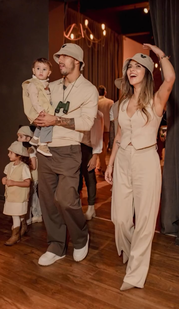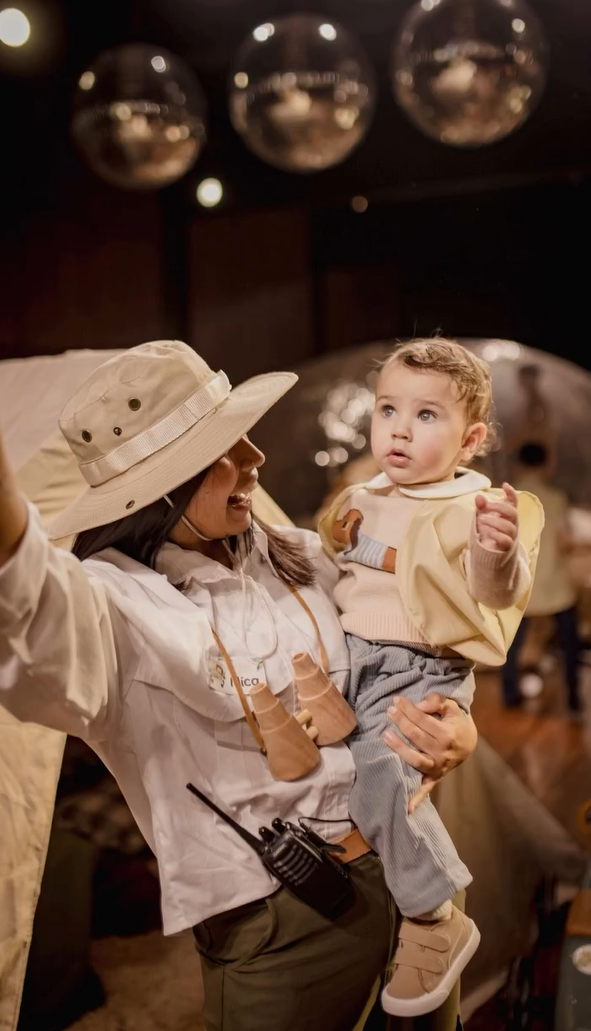 La ambientación incluyó globos en tonos verdes, tierra y dorado, creando un clima aventurero para los más chiquitos. Además, hubo un sector de juegos diseñado especialmente para que Lauti y sus amigos pudieran divertirse durante toda la tarde. Antes de la gran fiesta, la familia se reunió para celebrar el bautismo de Lautaro.