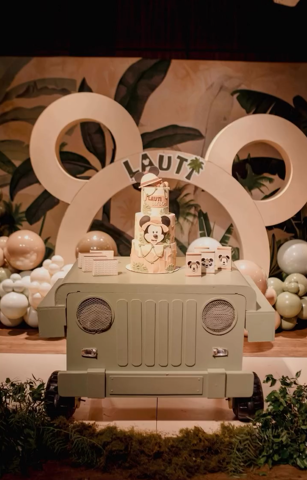 Bajo la consigna "El primer año de Lauti", Camila compartió en sus redes sociales los detalles de la celebración. El salón de fiestas se transformó en una verdadera selva: desde un candy bar lleno de animales exóticos hasta souvenirs personalizados y una torta de varios pisos que seguía la estética safari.