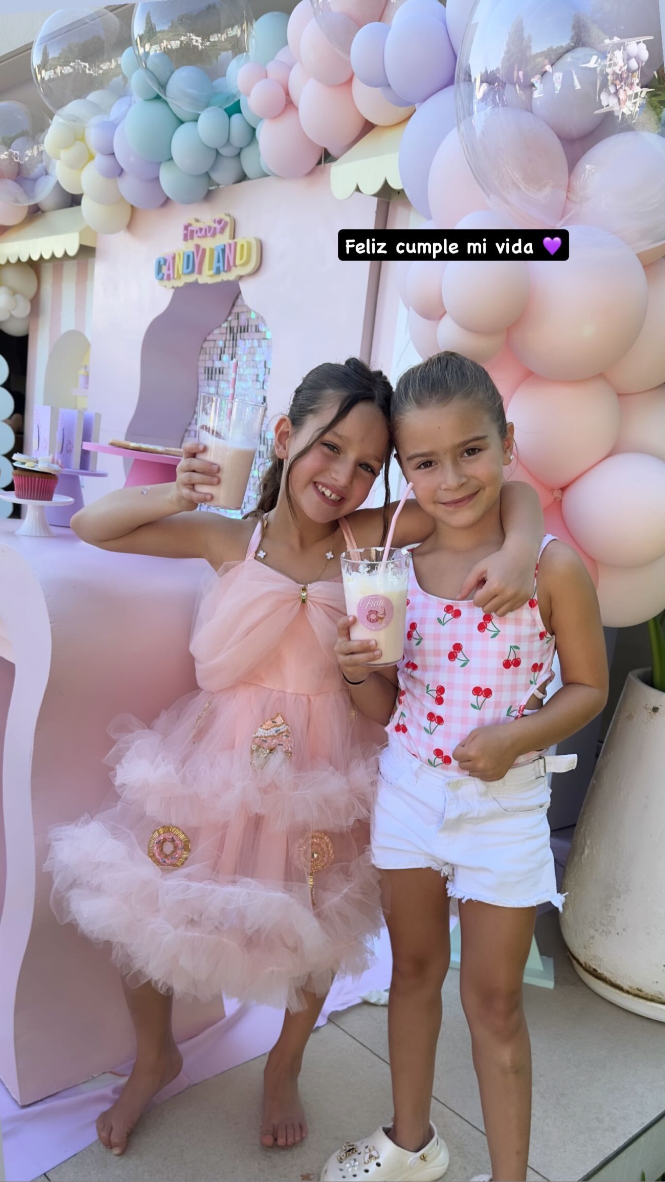 Fiel a su estilo, Cami transformó la casa en un verdadero universo de fantasía. La decoración incluyó una colorida torta con decoración de golosinas, globos en diferentes gamas de rosa pastel y estaciones de juegos que mantuvieron a los más chicos entretenidos durante toda la jornada.
