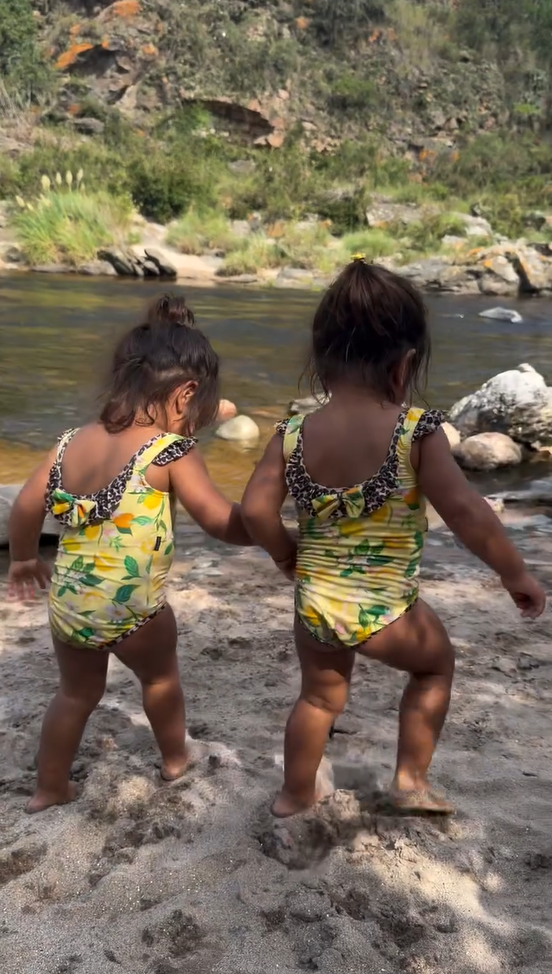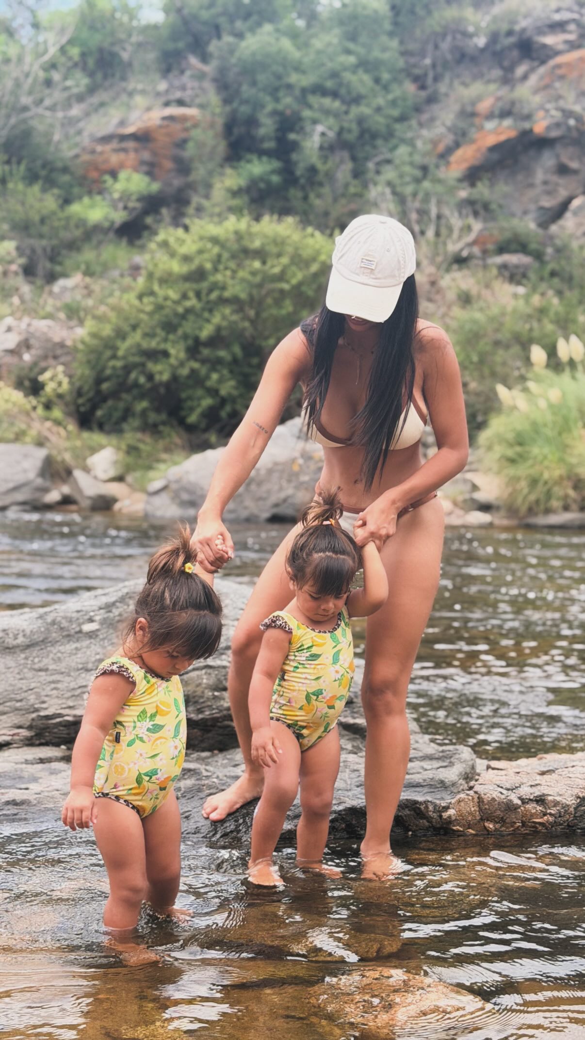 El grupo disfrutó de una tarde bajo el sol en uno de los paradores del río, donde las gemelas Medina Celis fueron las grandes protagonistas. Las nenas pudieron meterse al agua y disfrutar de su primer contacto con la naturaleza cordobesa.