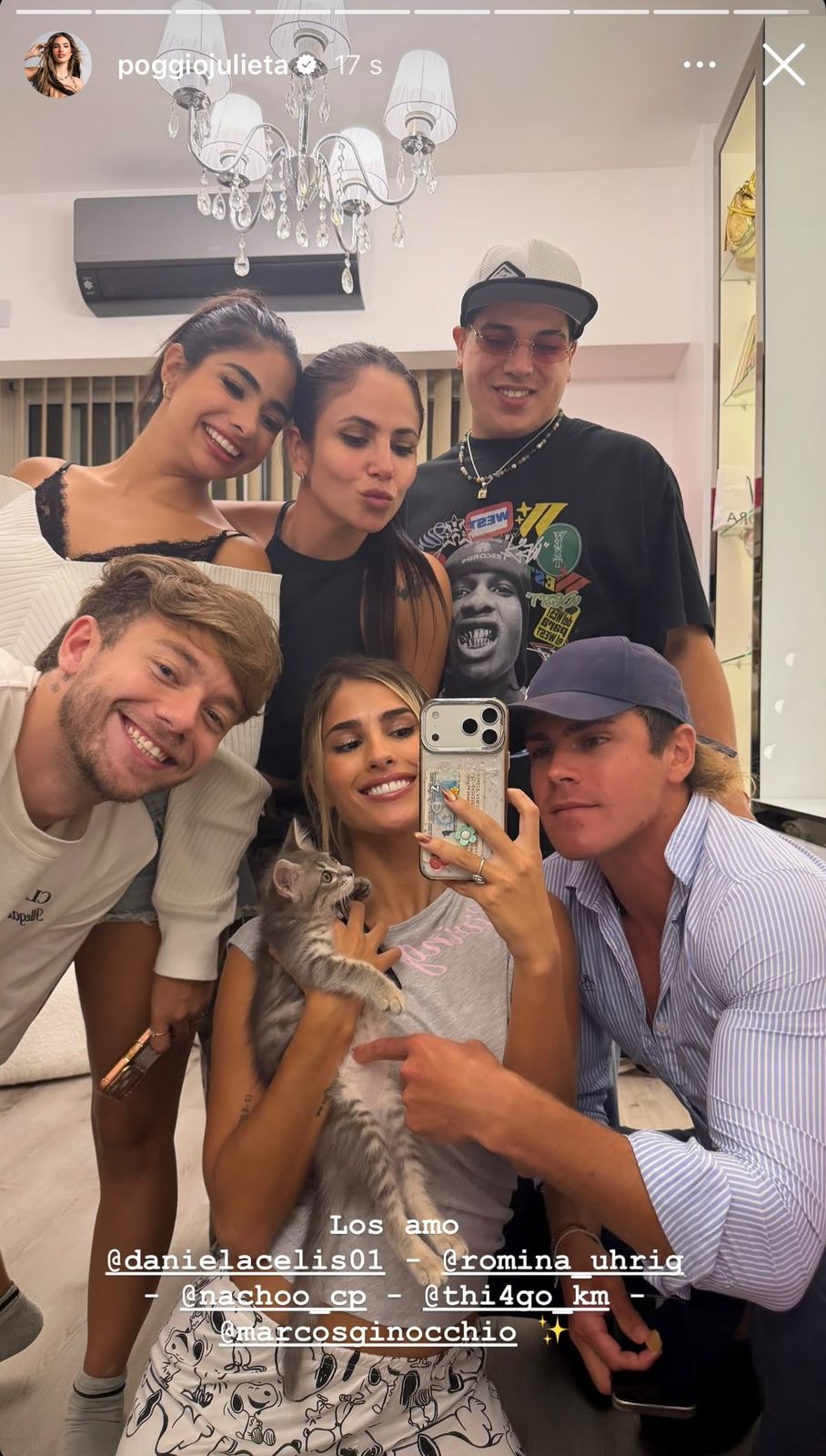 A través de las redes sociales, las figuras fueron compartiendo detalles de su reencuentro, como el sushi que comieron o el divertido baile que realizaron todos juntos. Además, los exjugadores aprovecharon para conocer a Chimuela, la gatita de Juli.