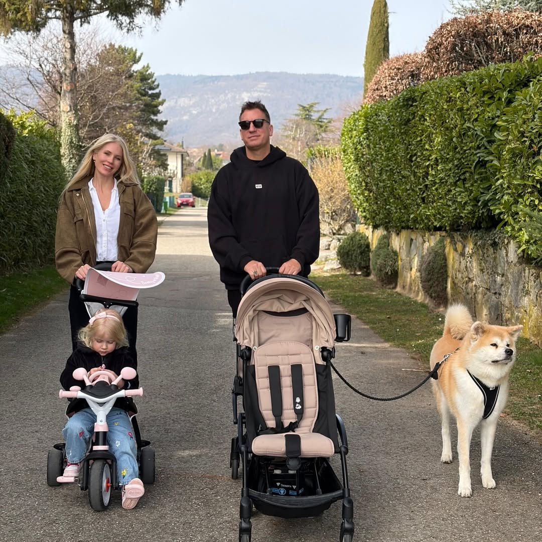En las imágenes se puede ver a la familia disfrutando de los paisajes alpinos y la tranquilidad de las calles suizas. La chiquita Elle se llevó todas las miradas mientras jugaba entre las flores, a la vez que el recién nacido Lando disfrutó del paseo desde su cochecito.