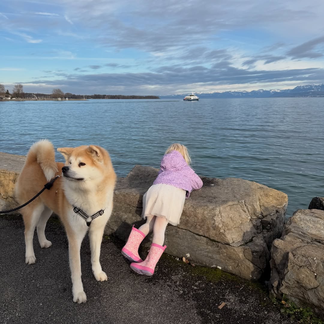 Incluso su fiel mascota, un imponente perro de raza Akita, formó parte de la travesía familiar, demostrando que para Maxi y Daniela, el plan perfecto siempre es con el equipo completo.