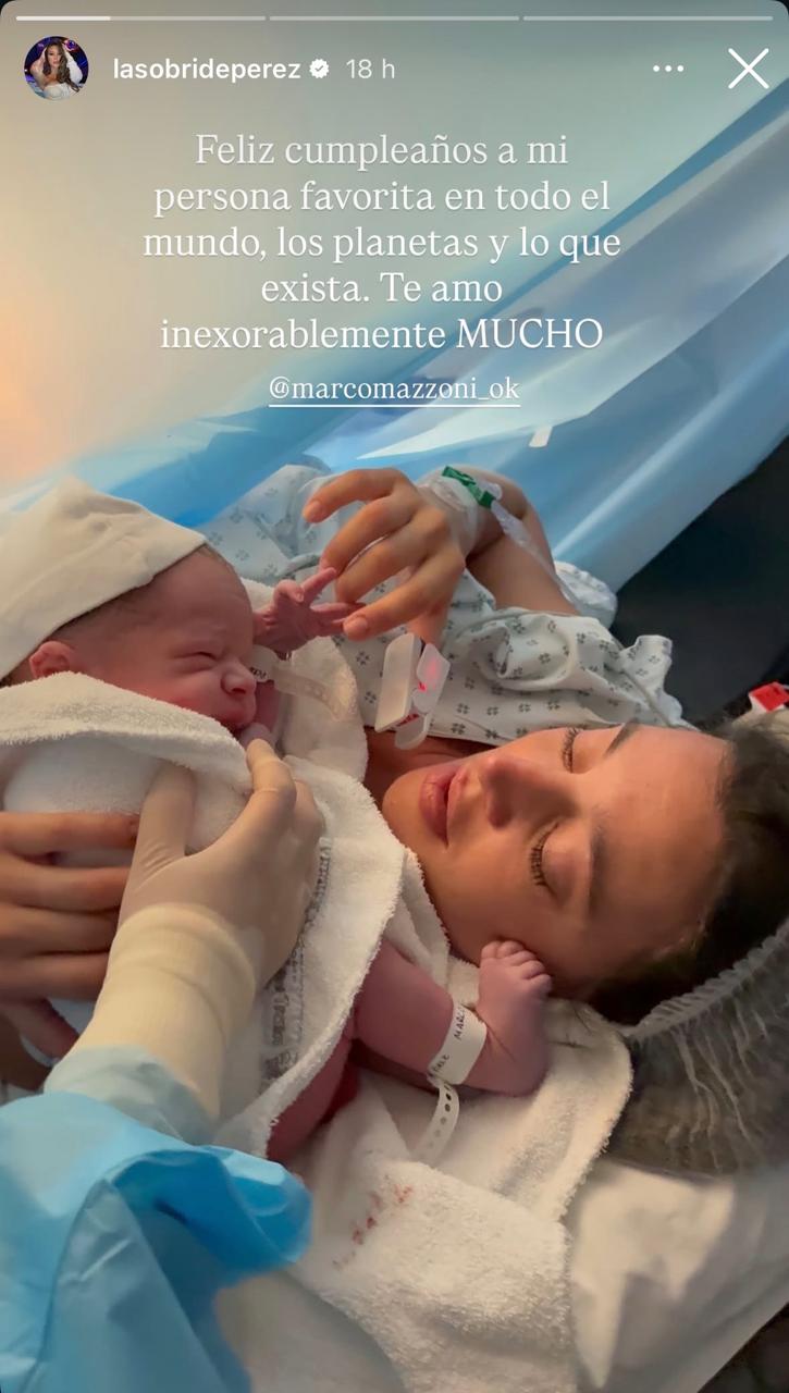 “Feliz cumpleaños a mi persona favorita en todo el mundo, los planetas y lo que exista. Te amo inexorablemente mucho”, escribió en una primera historia, con una foto del momento en que conoció a Marco en su nacimiento.