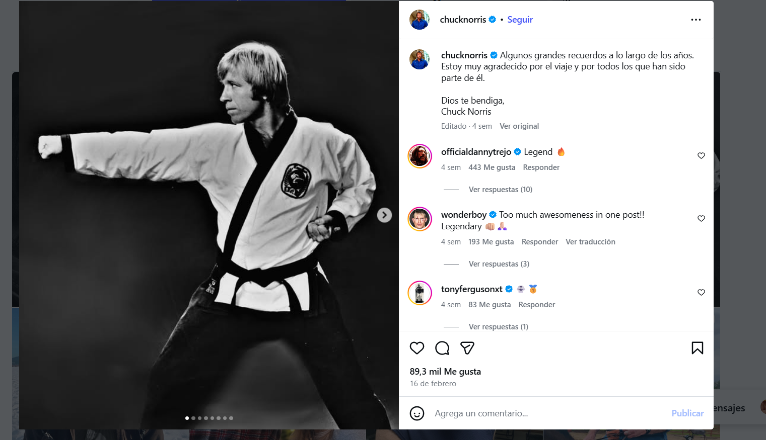 Norris, una leyenda de las artes marciales famoso por protagonizar taquilleras cintas de acción en la década 1980, cumplió 86 años la semana pasada y marcó la celebración con una publicaciones en las redes sociales.