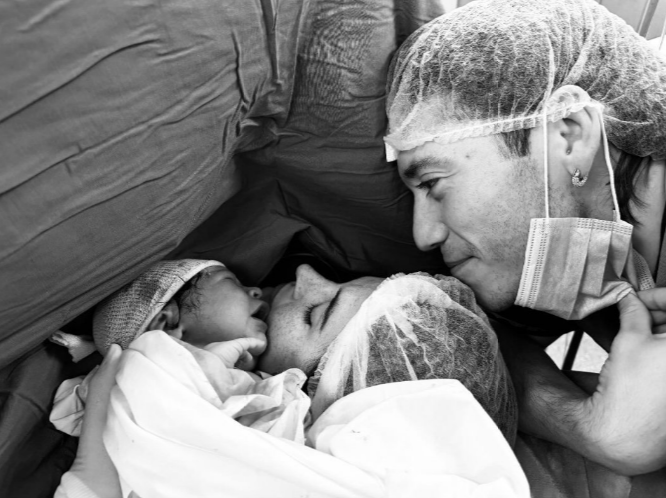 "Gracias a mi leona, te la bancaste toda y trajiste a la leona Justina a la manada", comenzó el rapero en una breve historia de Instagram, donde sumó la primera postal junto a su bebé.