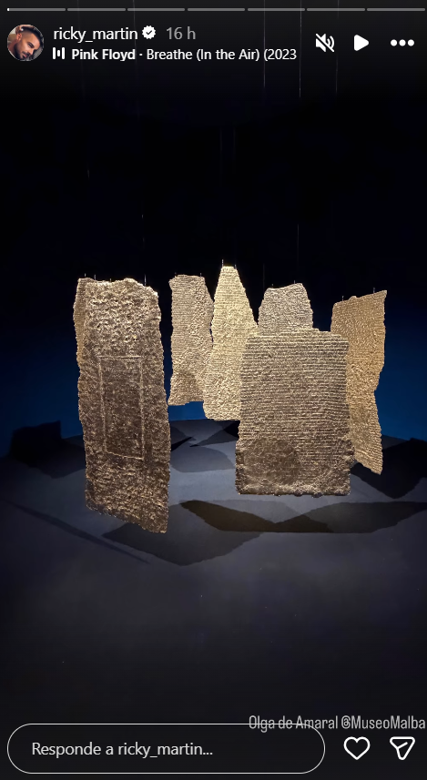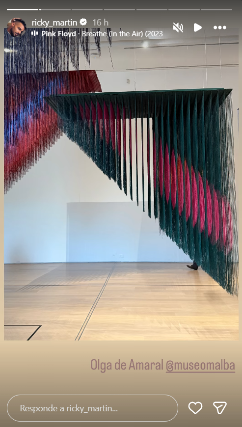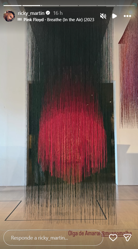 Lejos de los flashes de los escenarios, Ricky recorrió las galerías del museo como un visitante más. A través de su cuenta de Instagram, el cantautor puertorriqueño compartió su fascinación por la exposición "Cuerpo textil" de la reconocida artista colombiana Olga de Amaral. En sus historias, capturó detalles de las piezas que exploran la relación entre el tejido y el espacio, destacando la magnitud de dicha obra.