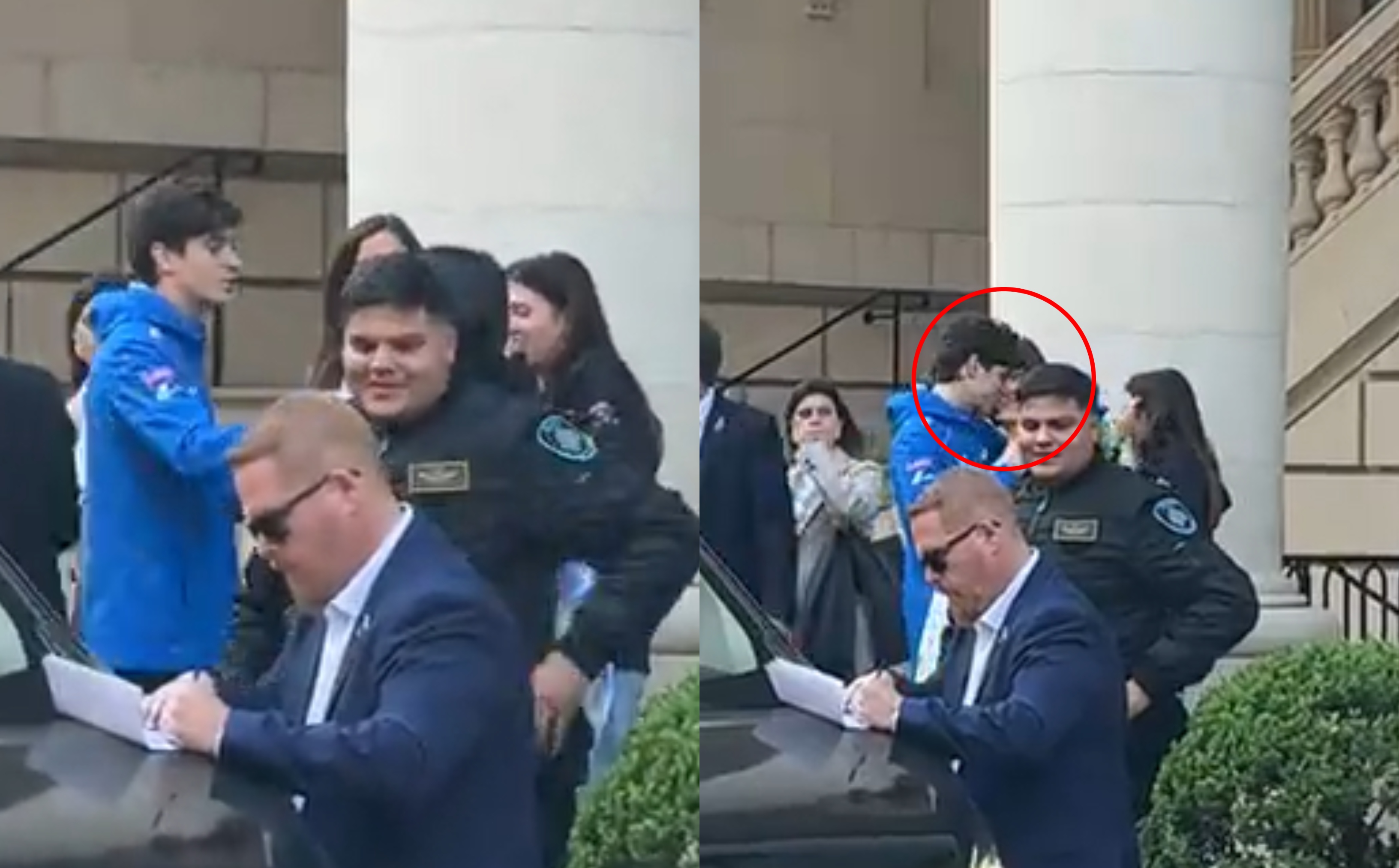 El usuario de Tik Tok @cristianmedina___ se encontró con el piloto en la puerta del hotel donde se hospedaba. Rodeado de gente de su equipo, y con fanáticos que desdes afeura le pedían una foto, Colapinto no se achicó y abrazó y besó a su novia Maia confirmando así el romance del momento.
