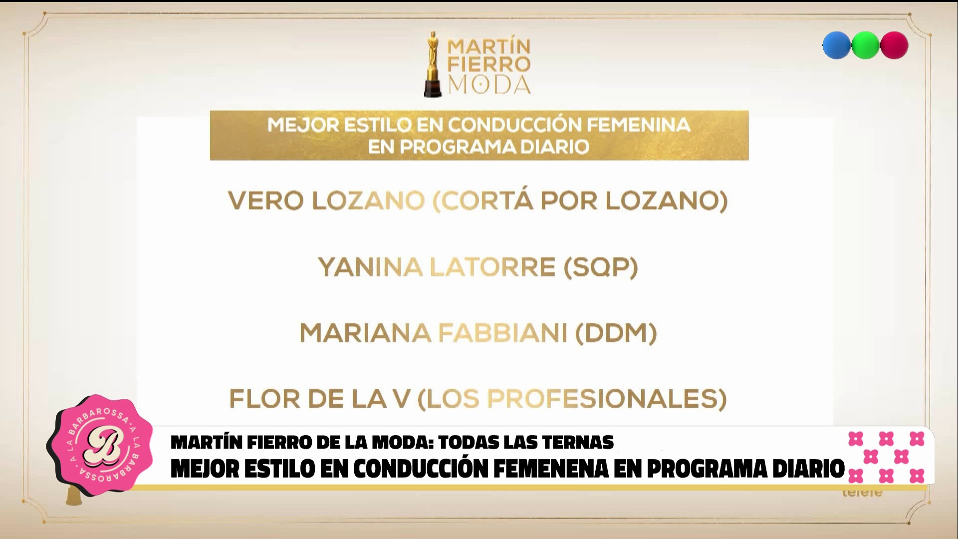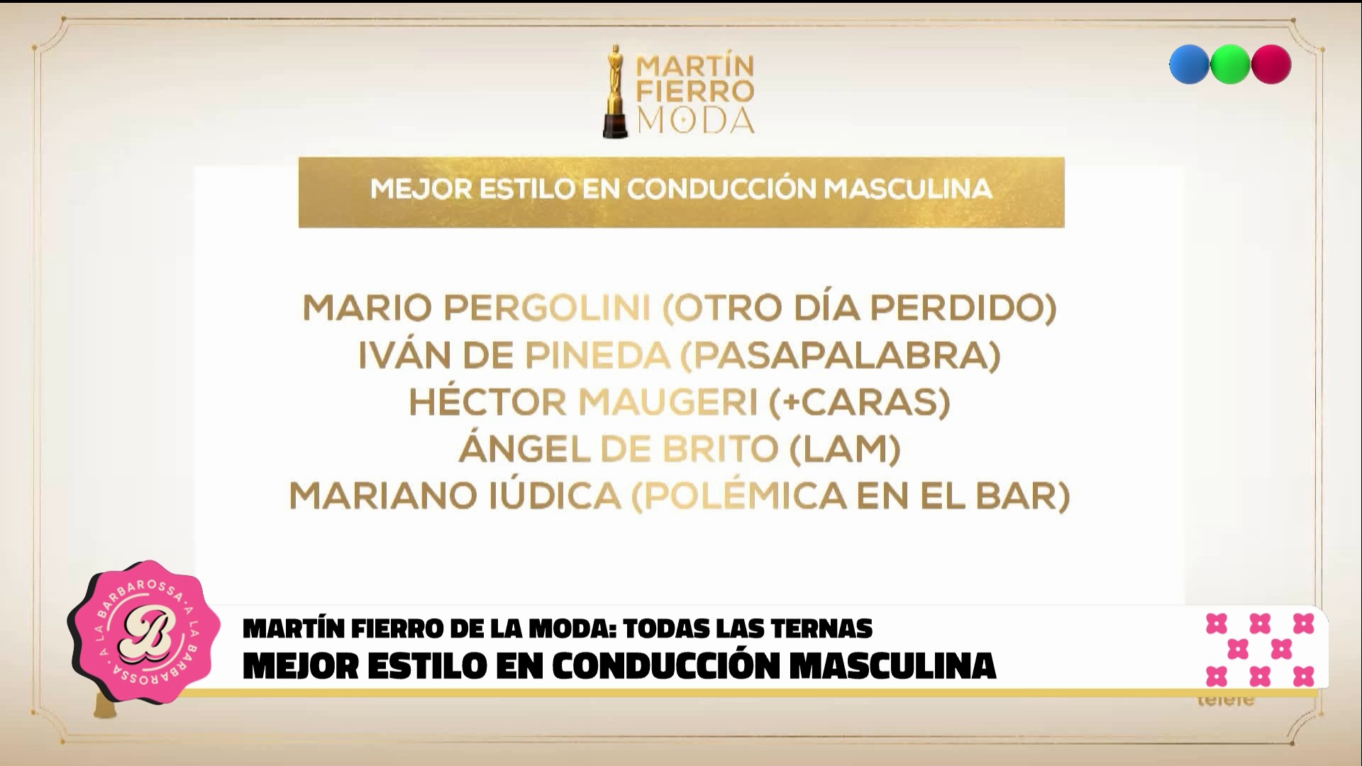 Este viernes en A la Barbarossa recibieron a Valeria y Luis Ventura, el presidente de APTRA, quienes adelantaron detalles de lo que se vivirá el domingo 26 de abril en la pantalla de Telefe y anunciaron en exclusiva como quedaron conformadas las 19 ternas.