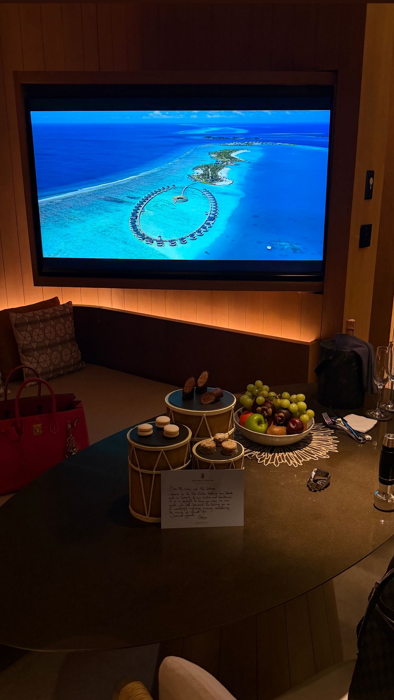 A través de sus redes sociales, Wanda compartió un álbum de fotos único. Desde su llegada al aeropuerto, donde se la vio con su característica colección de valijas, hasta su traslado hacia una de las villas más privadas del archipiélago.