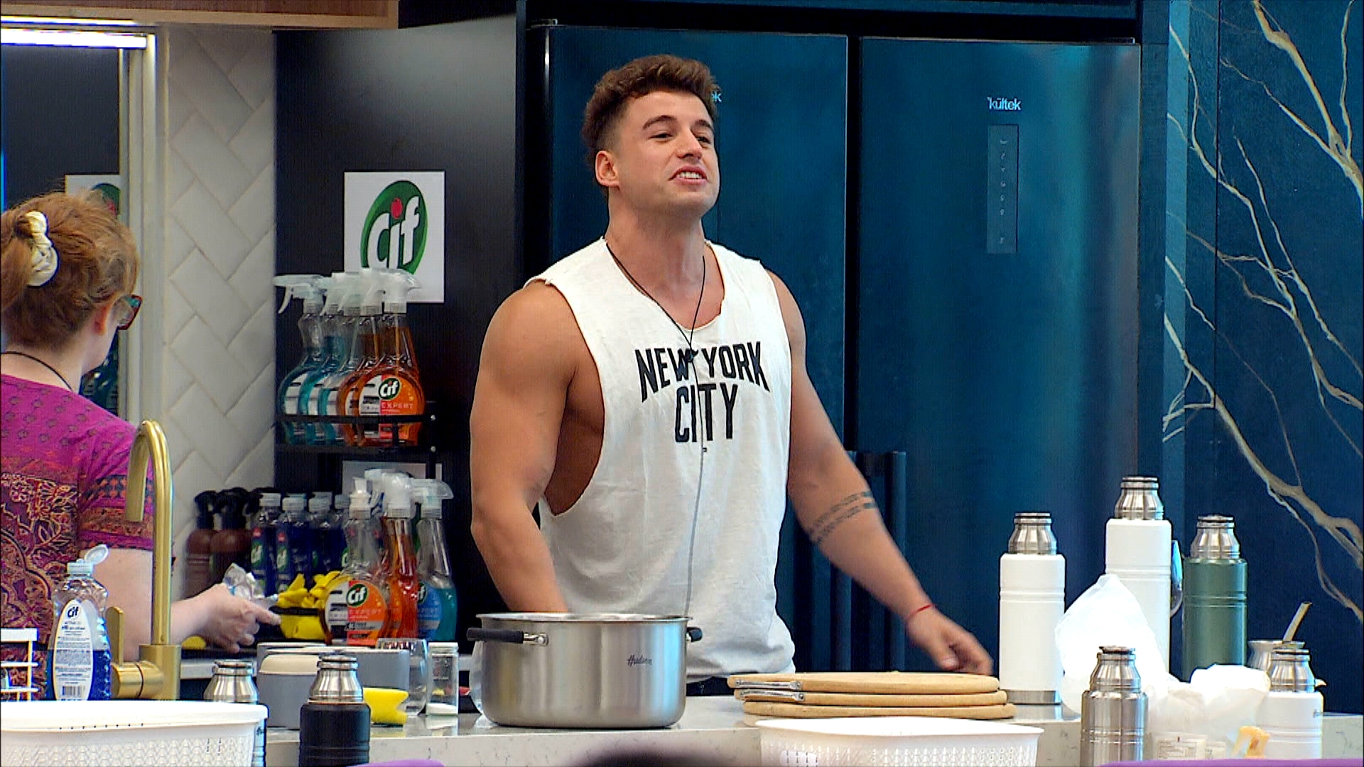 Cuando volvieron al interior de la casa, Manuel aseveró que el que “empujó” fue Brian y lo trató de “bocón”, todo esto al mismo tiempo en el que el exfutbolista rengueaba a causa del choque con una mesita y el matafuegos.