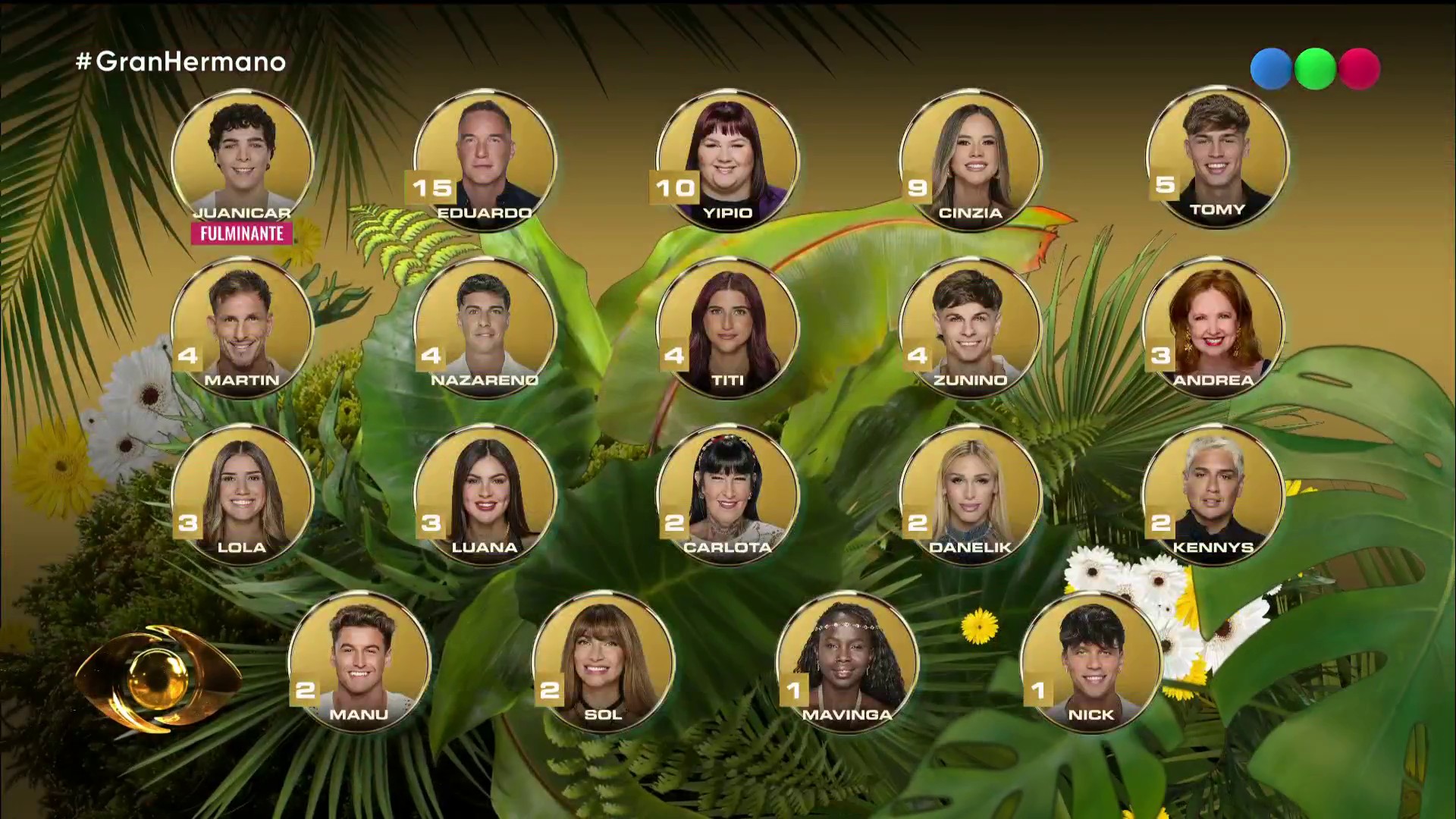 2 para Titi y 1 para Tomy. La paraguaya afirmó: “La planta mayor que se salvó por ser el líder, qué suerte tuvo Franqui. Entonces voy a nominar a Titi, que es el yuyo de Franqui, que se salvó”.