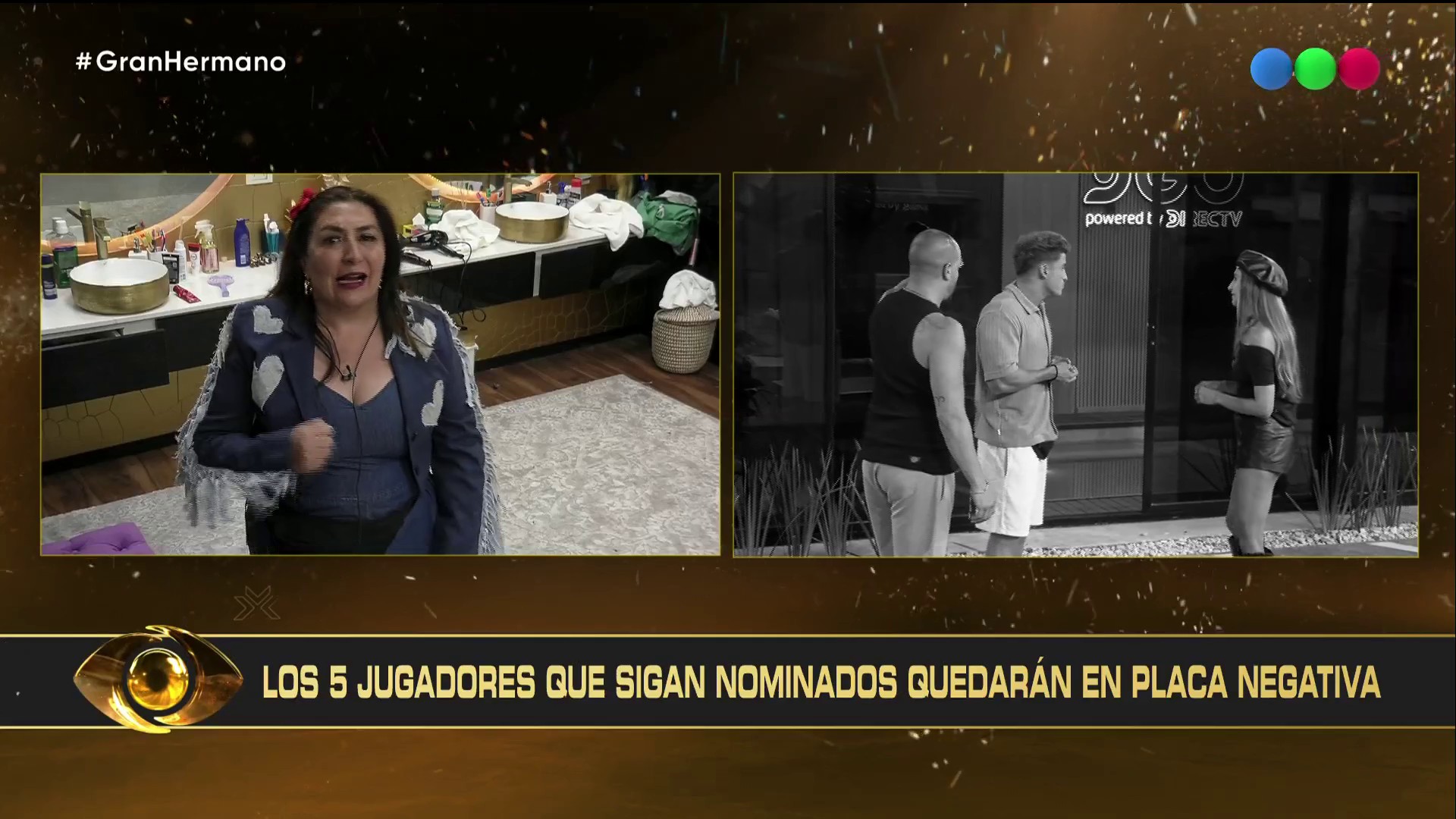 Al comienzo del programa, Santiago invitó a los nominados a salir al jardín y anunció que los que bajan de la placa pueden volver a ingresar a la casa. “Vuelve a la casa, continúa en la competencia, sigue en el juego… Carmiña”, confirmó el conductor.