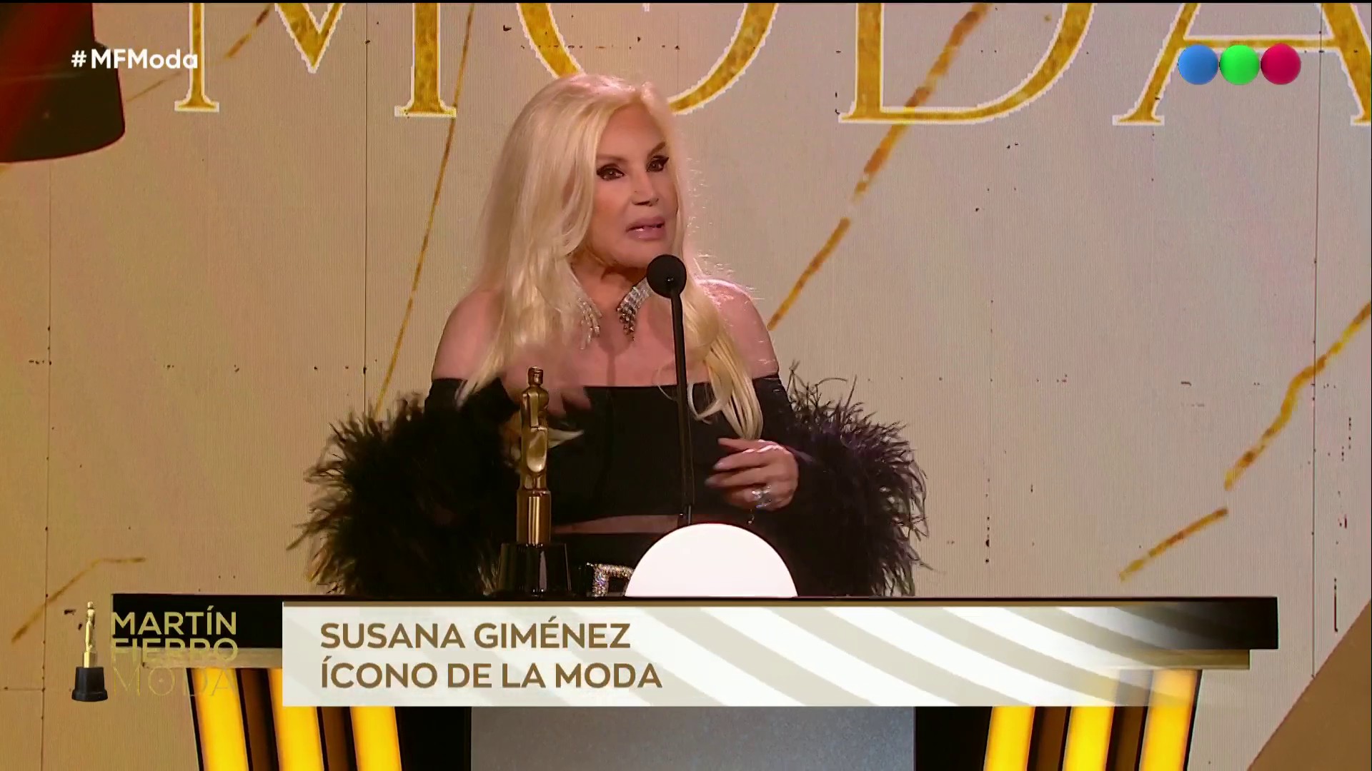 Susana Giménez recibió un impactante homenaje y una estatuilla acorde en la entrega de los Martín Fierro de la Moda 2026 realizada en Telefe el domingo 26 de abril. La diva estuvo presente y subió al escenario para hacer un agradecimiento tras ser nombrada “Ícono de la moda”.