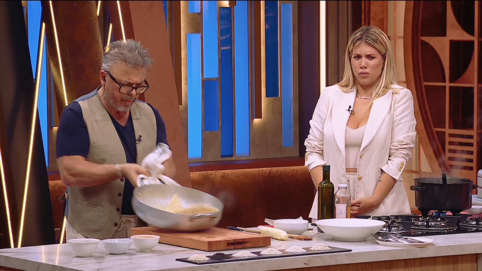 “Son 8 bendecidos por lo que van a vivir hoy. Son unos privilegiados”, les indicó Wanda Nara a los famosos que trataron de darlo todo con sus arroces para conseguir medallas y subir definitivamente al balcón con el fin de continuar una semana más en la cuarta temporada de Masterchef Celebrity.