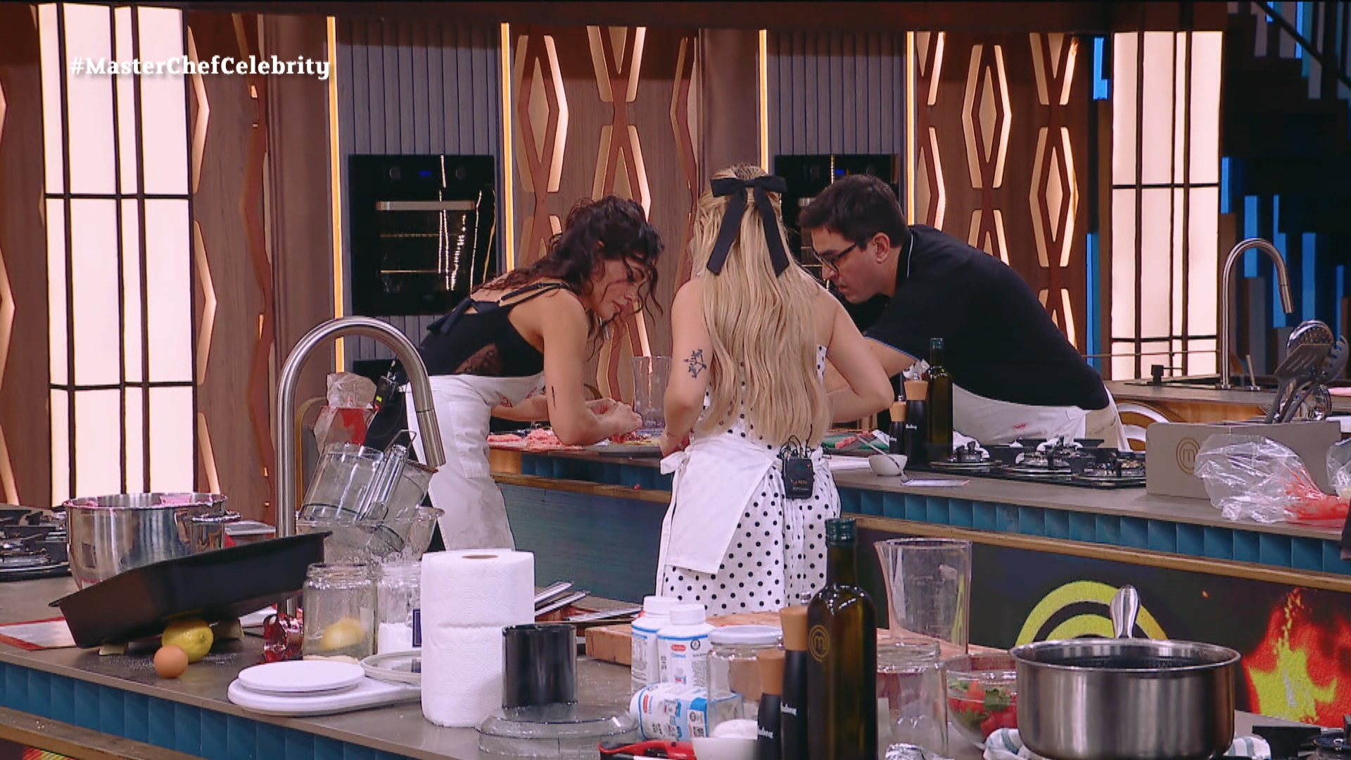 Todo parecía ir bien para Emilia Attias, hasta que llegó el momento de armar la torta con todas las preparaciones y no salió como esperaba. Rápidamente entró en crisis y Wanda Nara se acercó a ayudarla. Finalmente, cuando quedaban los últimos 10 segundos de la prueba, la Reini y el Turco Husaín, que habían terminado ya sus tortas, se acercaron a ayudarla a armar algo para presentar ante el jurado.