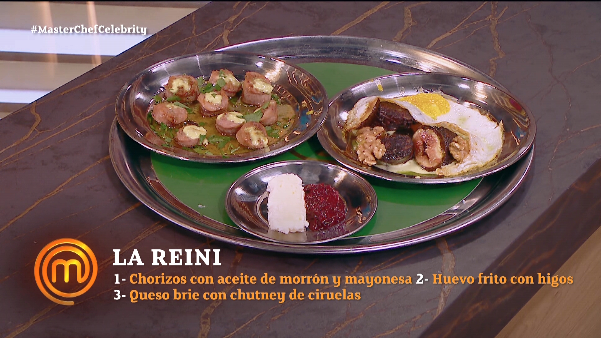 La influencer presentó chorizos con aceite de morrón y mayonesa, huevo frito con higos y por último queso brie con chutney de ciruelas.